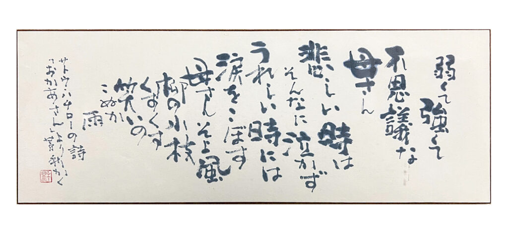 真鶴町の依頼を受け、同町に住んだ前田鉄之助の詩を揮毫。「真鶴 お林展望公園」内 に建つ。