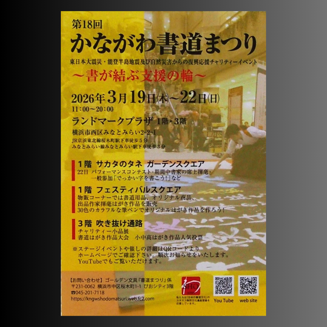 詳細は主催者のウェブサイトご覧ください。 かながわ書道まつり