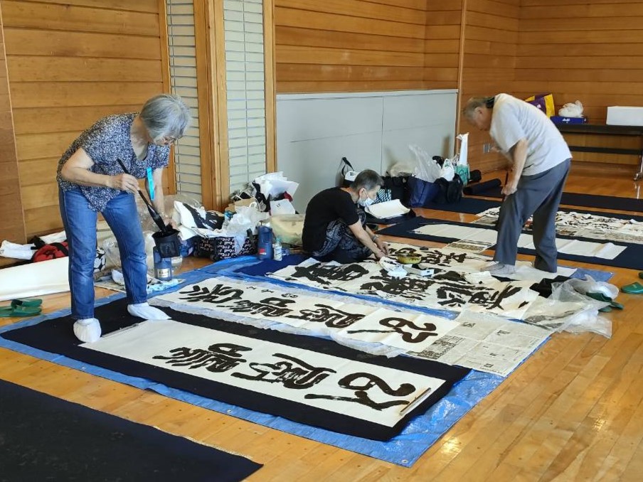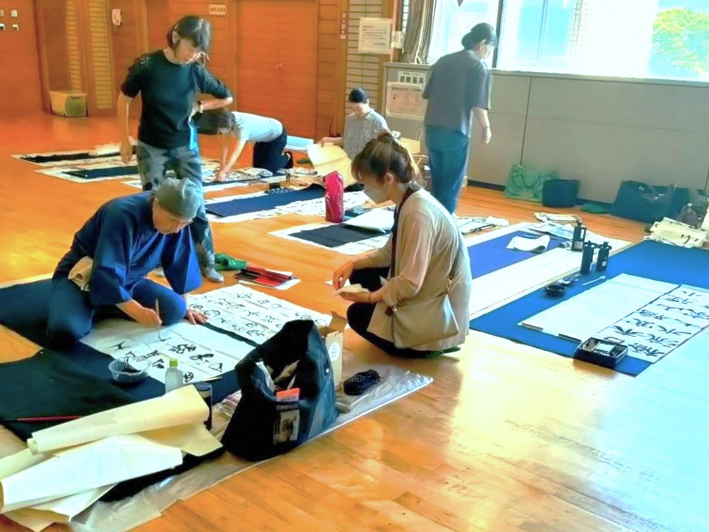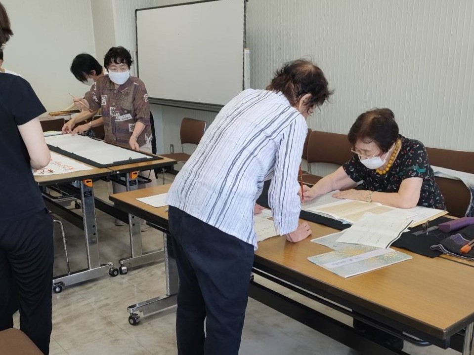 今秋に行われる本会の昇段級試験の対策、創作の部(今後の奎星展、毎日書道展、 照心書展等の展覧会に向けた作品の準備)、小中学生を対象とした「楽しい書道」の3部門に分かれて実施しました。